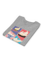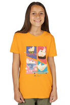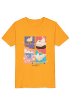 This tee features colorful panels depicting Henrietta in various joyous scenarios symbolizing freedom and friendship—from riding a Roomba to learning how to skateboard. The playful illustrations are set against a backdrop of soft pastels, bringing a sense of whimsy to the design. This charming T-shirt infuses happiness and imagination into any compassionate kid’s wardrobe. Its light, comfy fabric makes it a great choice for all-day wear, ensuring your kid stays kind and stylish!