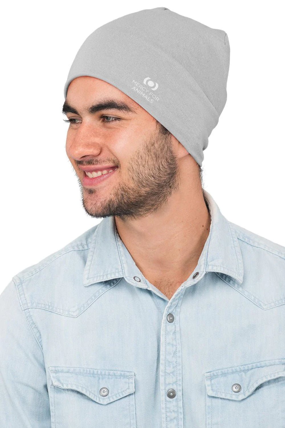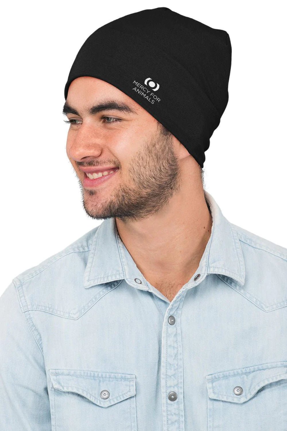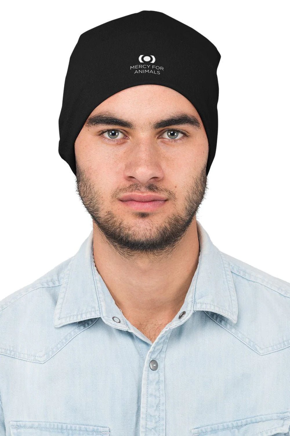 Mercy For Animals’ light-weight jersey logo beanie is sure to keep your head and heart warm. Thanks to its breathable lightweight fabric, you can wear it both indoors and outdoors.