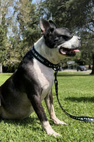 Treat your fur baby to the compassionate, fashionable, and functional leash and collar set they deserve, and walk with pride, knowing you are reflecting the values of love, respect, and compassion for every creature. Designed for the animal guardian who believes all animals deserve love—big or small; furry, feathered, or finned—this chic ensemble features a striking monochromatic geometric motif adorned with heartwarming animal accents. The message ‘Love Us All, Big or Small’ serves as a beautiful reminder of the kindness we should extend to all animals. This leash and collar set isn’t just about style—it’s a statement of love and compassion, whether for your own furry companion or the farmed animals we often overlook. Each walk becomes an opportunity to spread kindness.