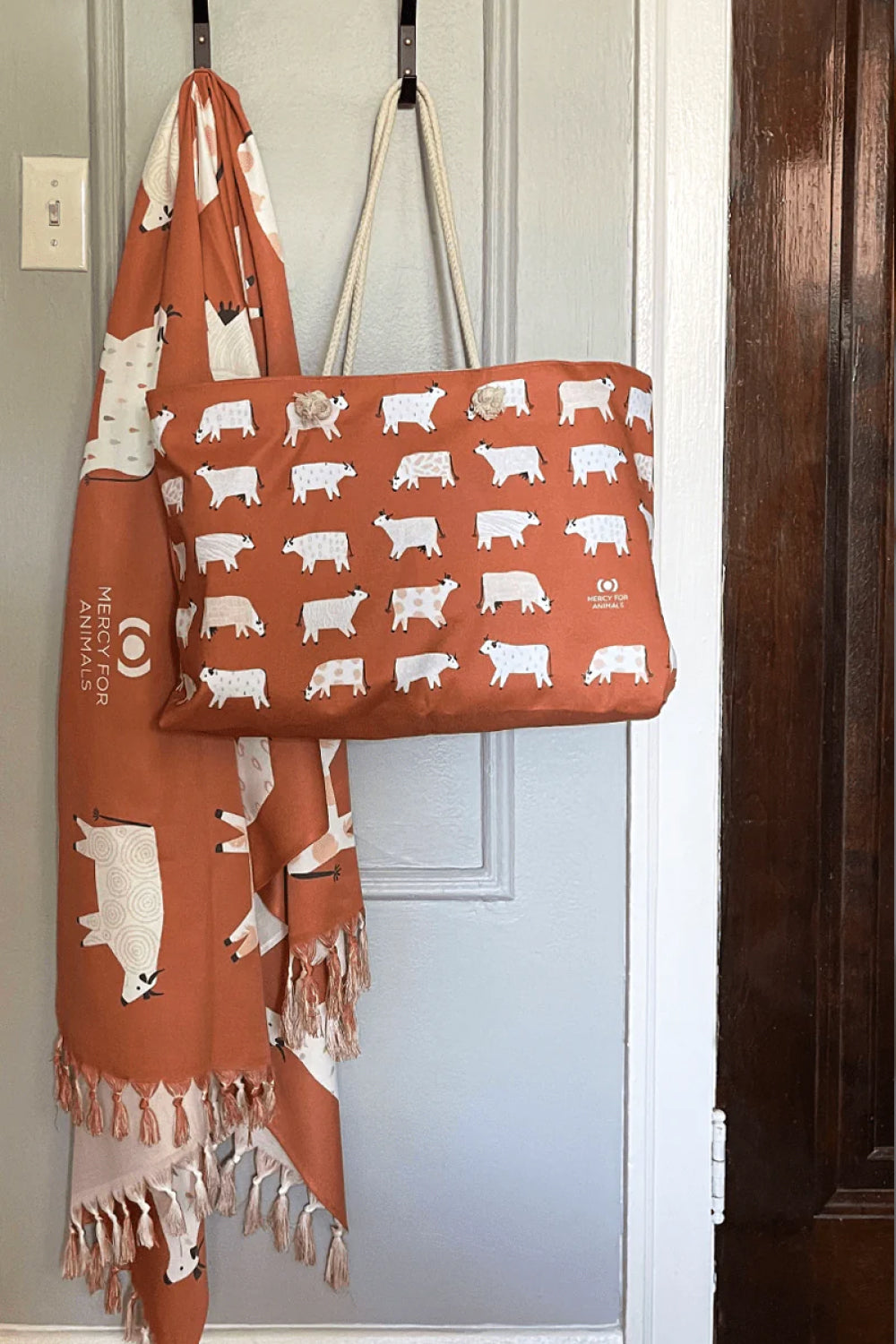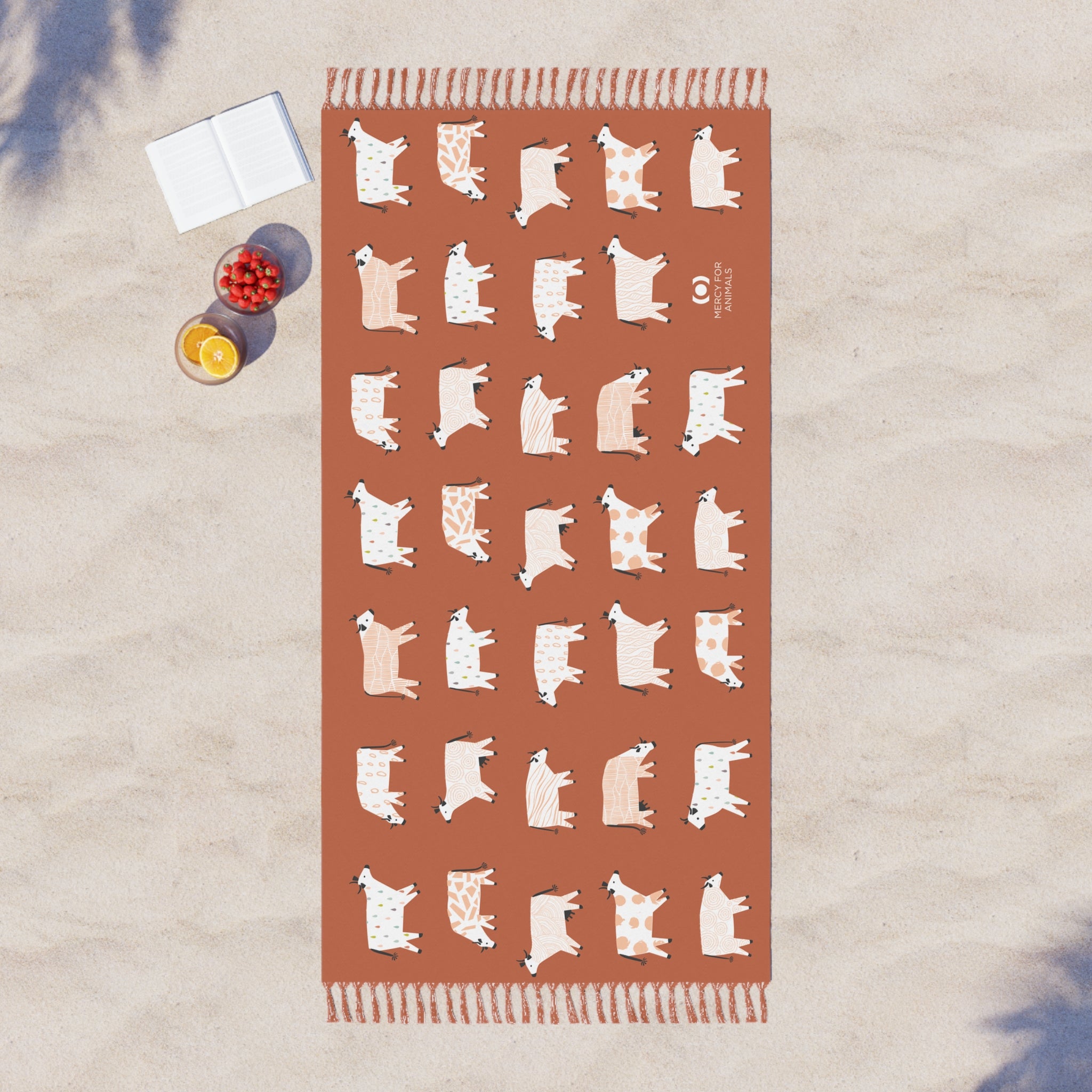 This versatile cloth can be used as a cover-up wrap, beach towel, or throw blanket! It was designed with the beach in mind but is equally great in the woods, on the lawn, at the park, or draped over the couch. The multipurpose wrap showcases a chic, colorful cow design, while its incredibly strong fabric can go with you off the beaten path without wrinkling or shrinking. It’s perfect for surfing the waves of compassion.