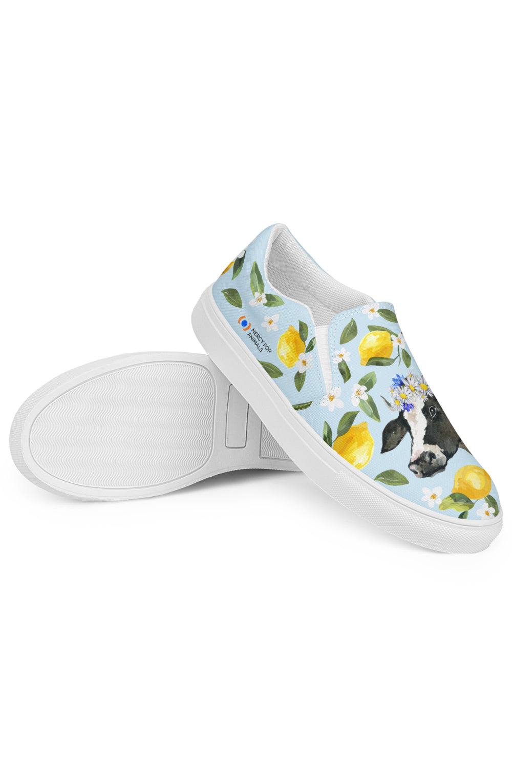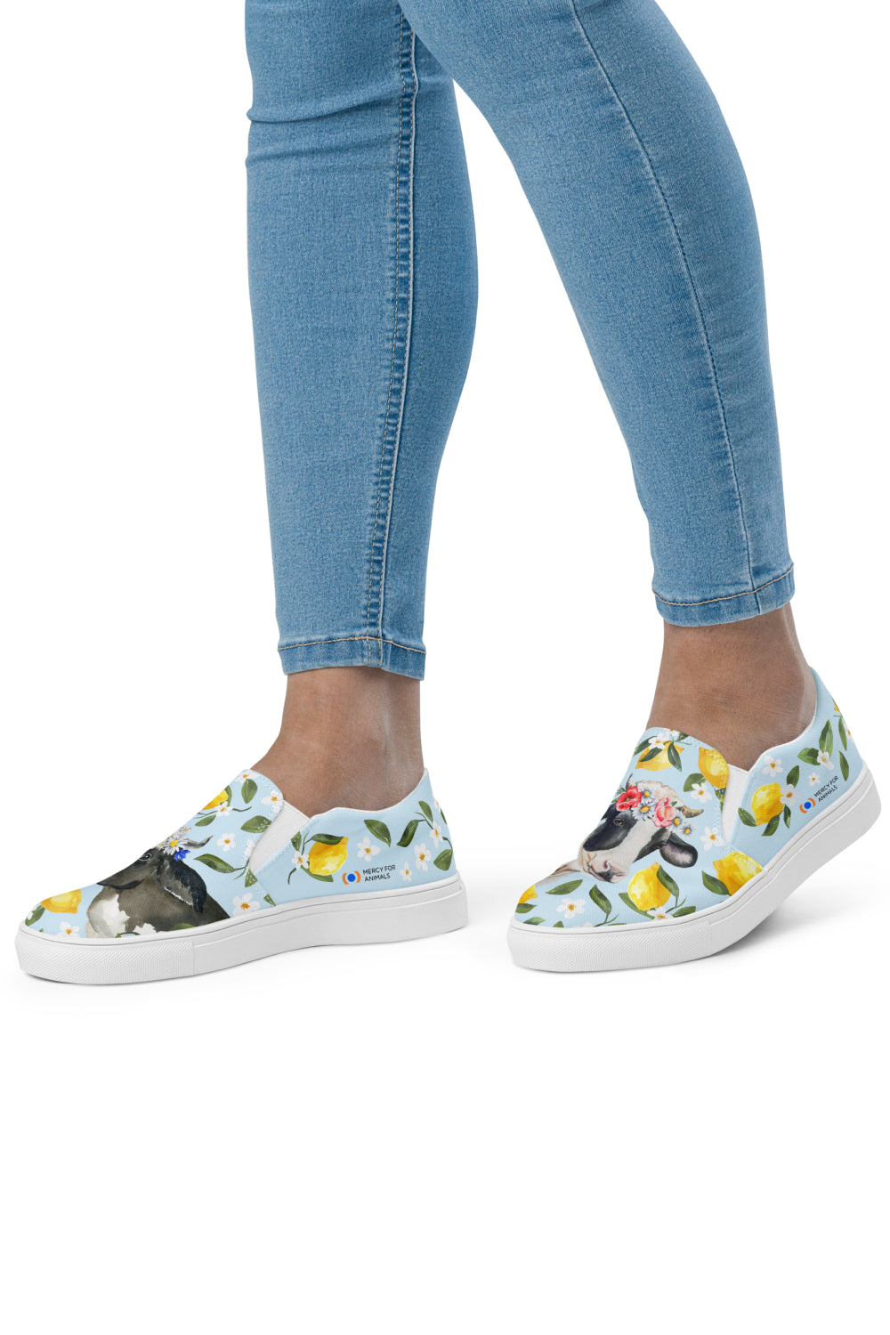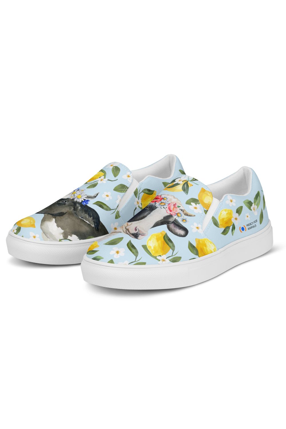 Show off your notions of love and kindness for farmed animals in Mercy For Animals’ endearingly sweet canvas shoes that combine convenience and comfort in one amazing lace-free style option. They’re ideal for travel, saving you time at airport security. The removable insoles make it a breeze to refresh the foot cushions without having to buy a brand-new pair of shoes—or switch them out entirely for custom insoles to ensure the perfect support for your foot. An easy pairing with nearly everything in a closet, including leggings, denim, and even dresses, these slip-on sneakers are sure to become part of your everyday look, no matter the season. From vegan brunches and vacations to classrooms and casual Fridays, these versatile shoes are a go-to outfit must-have. Enjoy every step toward compassion while turning heads on the go!