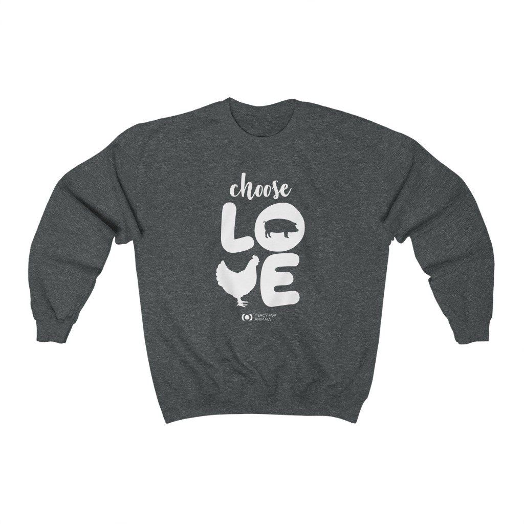 Cozy and versatile, this crewneck, long sleeves sweatshirt is a perfect reminder to choose love when considering farmed animals. It’s perfect for layering on chilly days or a cool evening while showing off your big heart for animals.