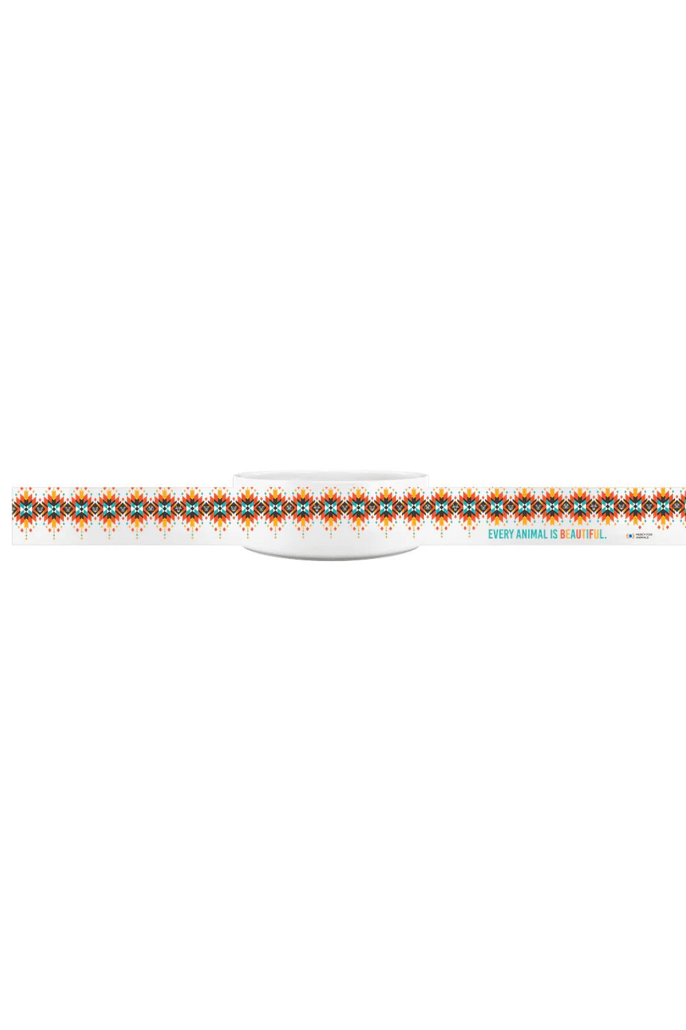 This stunning ceramic animal-food bowl features a geometric motif in rich hues straight from the desert sky. The subtle animal accents and message add a sweet reminder that every animal is beautiful. Give your companion animal’s mealtime a compassionate look with this machine-washable and microwavable bowl.