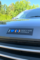 Your compassion is really going places! The front of this magnet is made with highly durable and weatherproof vinyl, so it will stay pristine even when left under direct sunlight. The magnetic back will stick to any metal surface, so it’s perfect on any car, fridge, filing cabinet, locker, or desk. Show your support for farmed animals everywhere you go!