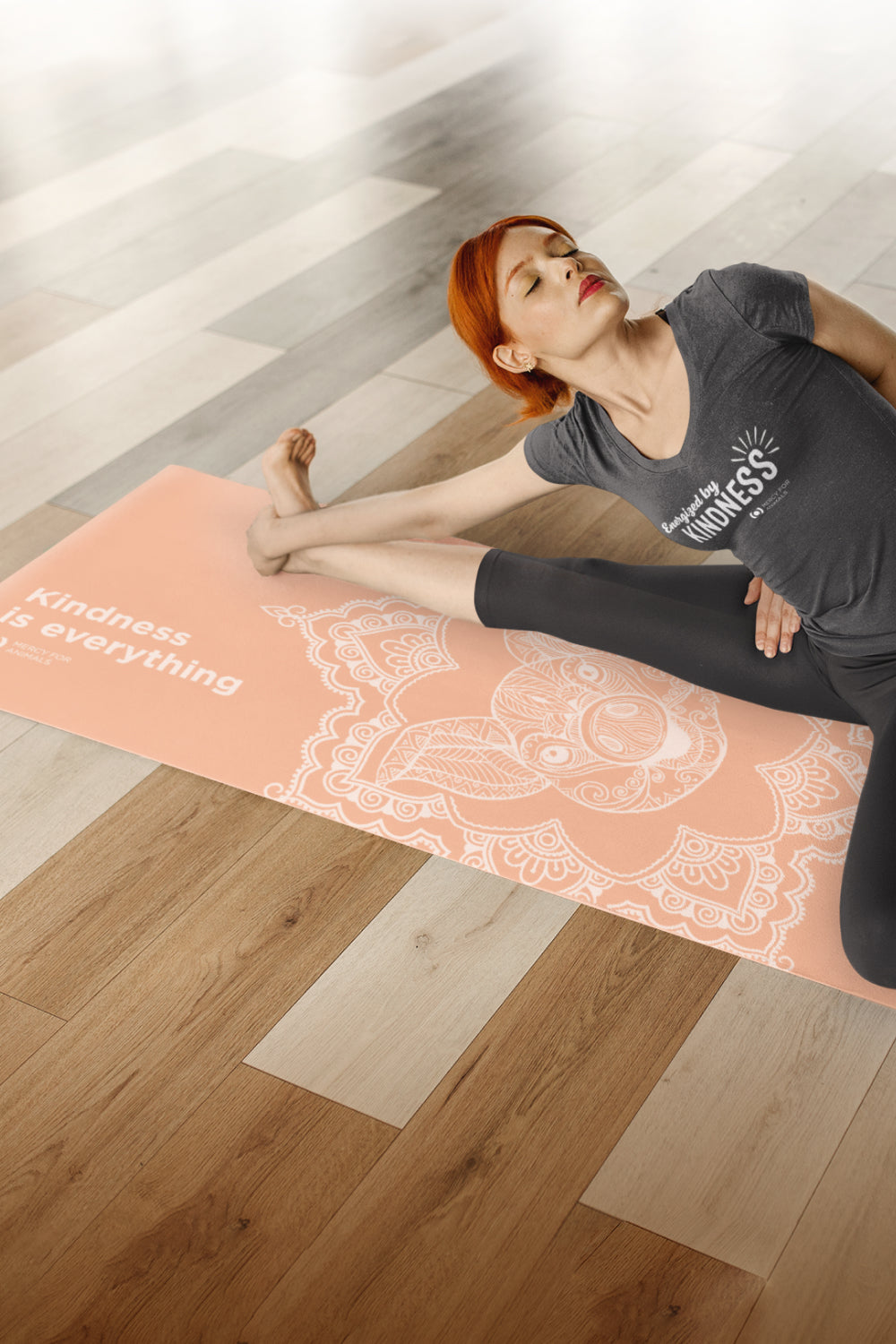 Mercy For Animals’ yoga mat is a must-have for beginners and seasoned health enthusiasts alike. Great for yoga, meditation, Pilates, or floor exercises, this quarter-inch-thick mat cushions bones and joints. Its beautiful artwork and message are sure to inspire everyone—on and off the mat. Give as a gift or grab one for yourself!