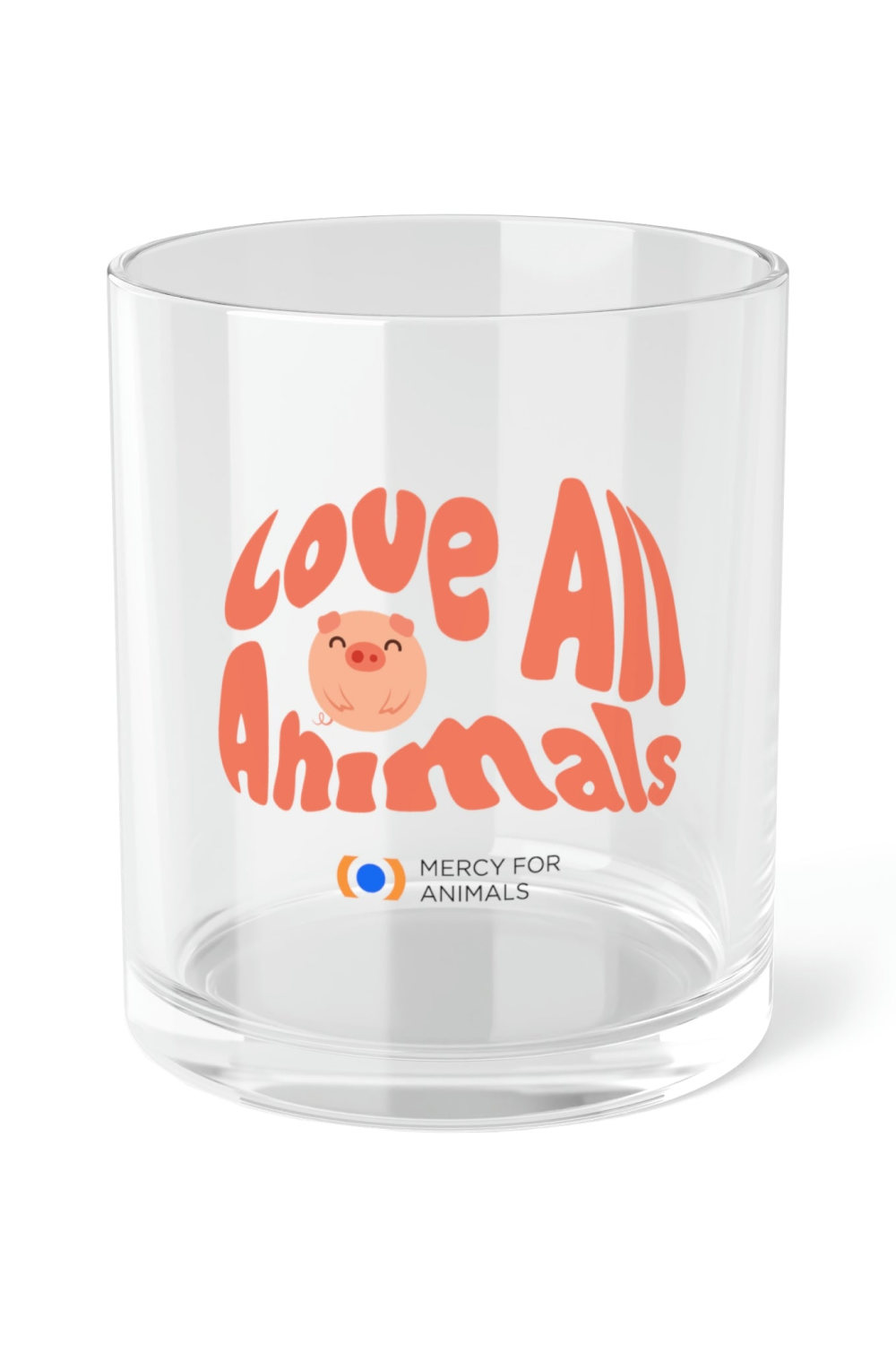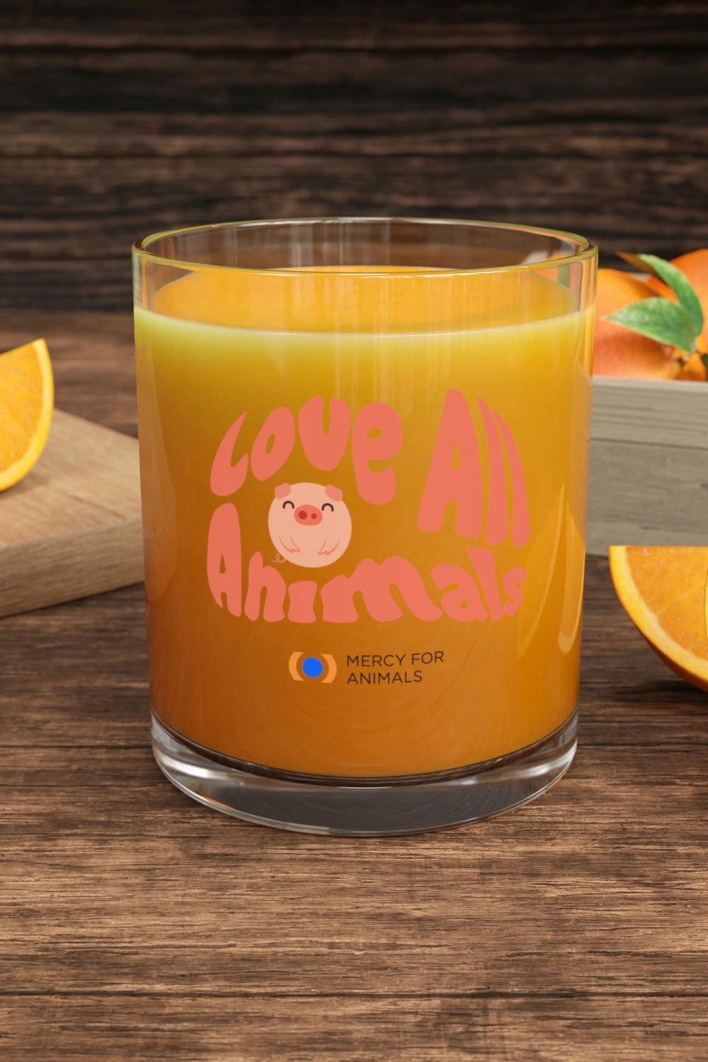 Take your compassion up a notch with Mercy For Animals’ bar glass. This 10-ounce glass is sure to quench your thirst while gently reminding the world to love all animals. Our bar glass is a great way to show off your support at any get-together. It also makes the perfect gift for any occasion!