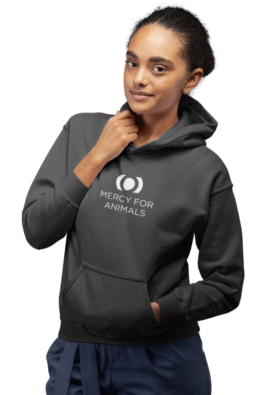 Show your support for Mercy For Animals’ vital work in this comfy, no-pill pullover hoodie. It’s perfect for layering on chilly days or a cool evening while showing off your big heart for animals.