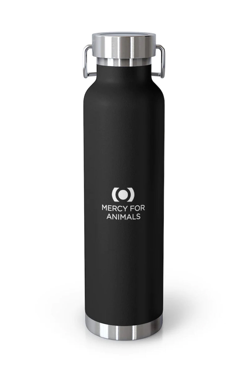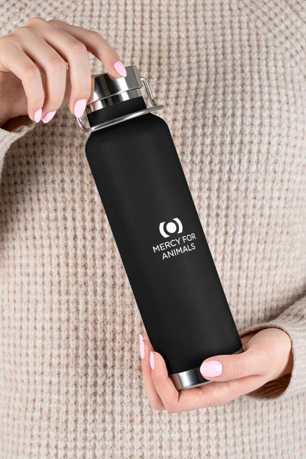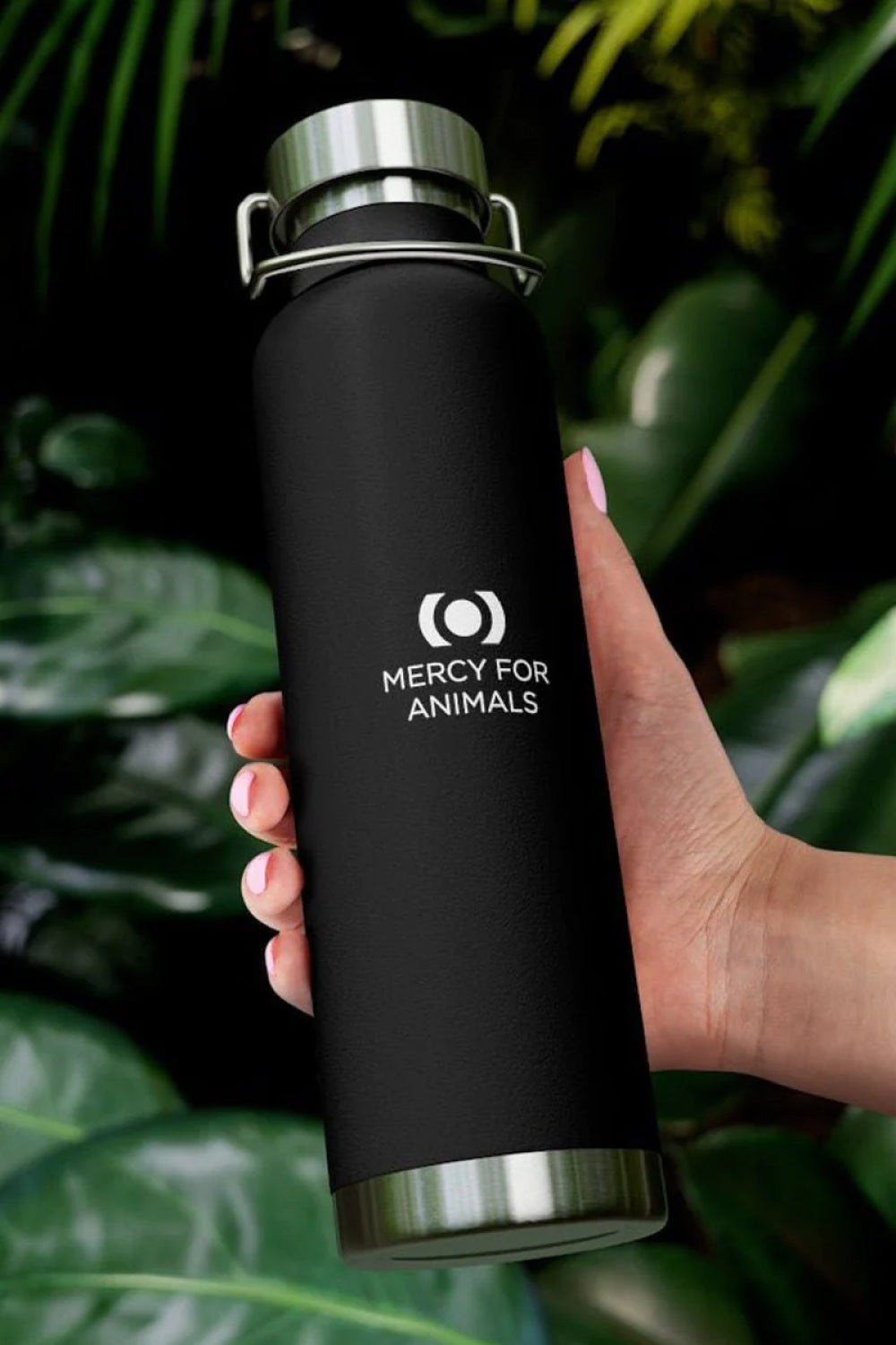 Whether you’re leafleting, going to yoga, or running to work or class, this spill-proof, insulated bottle is sure to quench your thirst and keep you looking compassionately cool! Keep your drink steaming hot or icy cold all day while gently reminding the world to be kind to all animals with Mercy For Animals’ awesome bottle. This bottle not only resists condensation—so no sweating or slipping—but fits standard vehicle cup holders and resists scratches and fading. Give as a gift, or grab one for yourself!