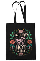 Introducing our eco tote, designed for those who want to make a bold statement for animals and kindness to cows. Cut back on single-use plastic bags and embrace sustainability with the ‘Mothers, Not Machines’ eco tote, crafted from 100% recycled materials. The tote features a powerful graphic of a mother cow and her calf, with delicate flowers and the slogan ‘Mothers, Not Machines’ proudly displayed above. This design is a reminder that cows are living beings, not milk-production machines. It also highlights the emotional bond between cows and their calves, which is cruelly broken in the dairy industry so that the milk can be collected and sold for human use. This tote is an easy, nonconfrontational way to draw awareness to this and other harsh realities of the dairy industry while helping build a world where animals are treated with respect and compassion.