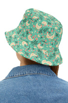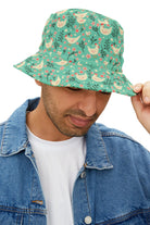 This bucket hat is a delightful blend of vintage charm and contemporary style that adds a whimsical touch to any outfit. The soft mint background is beautifully complemented by delicate patterns of playful mother hens and baby chicks surrounded by pink blossoms and leafy vines, creating a nostalgic and enchanting look that’s perfect for celebrating your love for farmed animals.