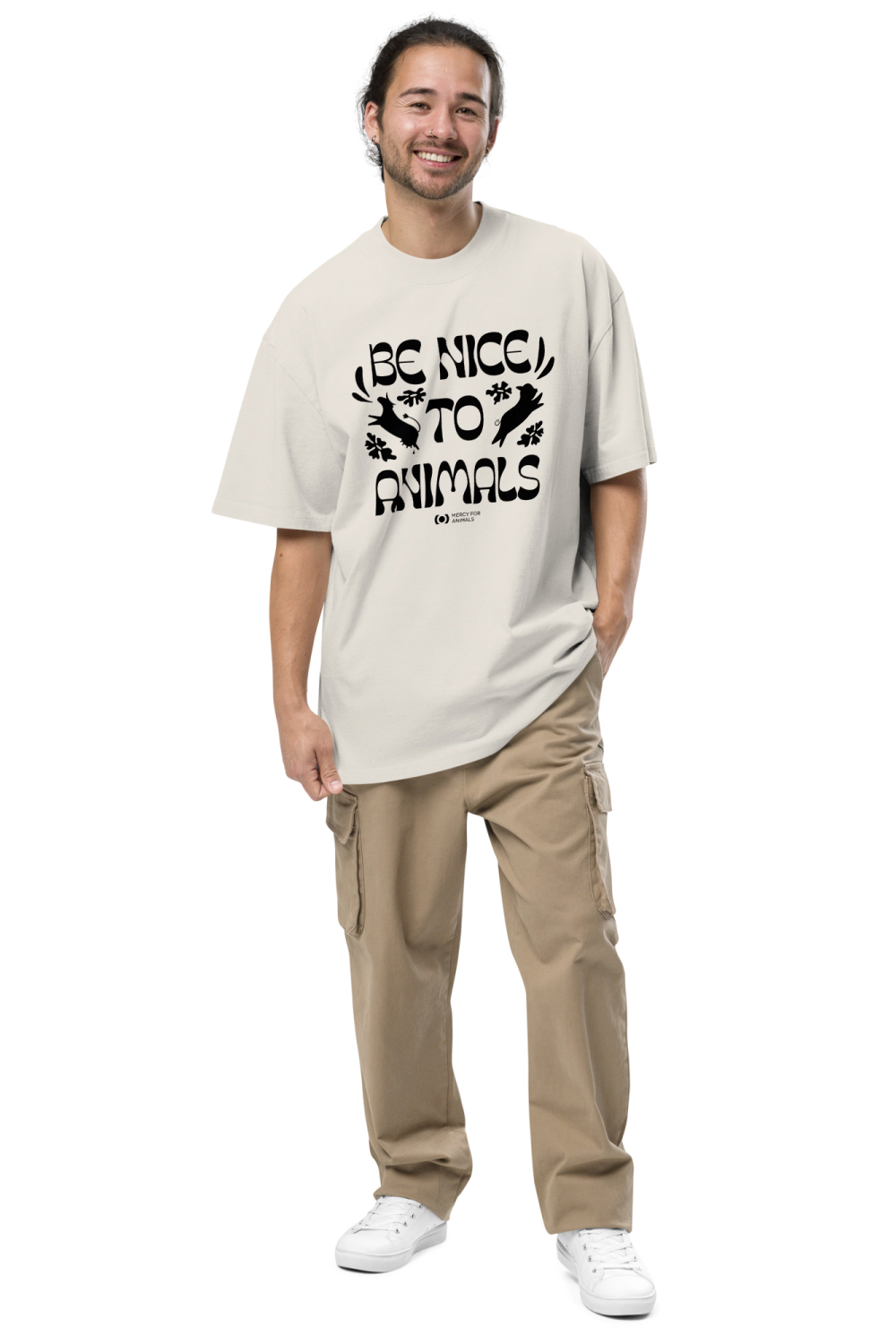 This T-shirt not only promotes kindness to animals but embraces the latest fashion trends with a hint of nostalgia. With an oversize and boxy fit, it allows for effortless layering and creating unique outfits. The dropped shoulders add a touch of casual elegance, while the wide-neck ribbing adds a stylish detail. The ‘Be Nice’ T-shirt is a must-have for fashion-forward animal lovers.