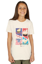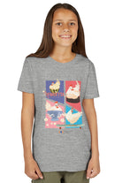 This tee features colorful panels depicting Henrietta in various joyous scenarios symbolizing freedom and friendship—from riding a Roomba to learning how to skateboard. The playful illustrations are set against a backdrop of soft pastels, bringing a sense of whimsy to the design. This charming T-shirt infuses happiness and imagination into any compassionate kid’s wardrobe. Its light, comfy fabric makes it a great choice for all-day wear, ensuring your kid stays kind and stylish!